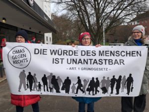 Ein paar „große“ Themen haben uns in diesem Jahr beschäftigt und entlang dieser versuche ich die Vielfalt unserer Aktionen zu bündeln. „Groß“ deshalb, weil sie in der gesellschaftlichen Debatte sehr präsent waren und/oder uns als OMAS GEGEN RECHTS sehr beschäftigt haben.