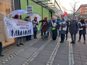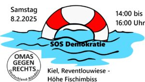 Die Aktionen fanden ihren Höhepunkt am 8.2. mit der Teilnahme an der bundesweiten OMA-Aktion unter dem Titel „SOS Demokratie“ auf der Kiellinie- unsere erste große eigenständige Aktion im Jahr 2025, die gute Resonanz fand.