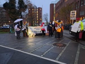 In diesem Jahr jährte sich die Befreiung von Auschwitz ebenso wie das Ende des Krieges und damit das Ende des Nationalsozialismus zum 80. Mal. 9000 Menschen, darunter natürlich auch OMAS beteiligten sich am 27.Januar an einer Menschenkette um die Kieler Oper.
