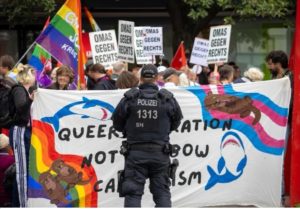 Und das führt zum letzten „großen Thema“, der Vernetzung vieler, unterschiedlicher, im Ziel aber vereinter OMAS GEGEN RECHTS Gruppen. Wir haben uns in konkreten Aktionen landesweit und bundesweit im Rahmen unserer Möglichkeiten vernetzt; bei vielen Aktionen konnten wir durch unsere Präsenz unterstützen – Fridays For Future, der CSD oder die Seebrücke, um nur einige zu nennen, können traditionell auf unsere Unterstützung zählen. OMAS waren bei den beiden Nordtreffen in Heideruh, manche sind am Aufbau neuer Gruppen – gerade im ländlichen Raum – aktiv und beteiligt und das Projekt landesweite Vernetzung zur Vorbereitung der Landtagswahlen ist im Aufbau begriffen.