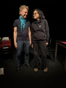 Und natürlich beteiligten wir uns im November an dem Bündnis „Kiel gegen Antisemitismus“. Neben der Mahnwache an Stolpersteinen, einer Führung zu Stolpersteinen in Düsternbrook gab es von den OMAS GEGEN RECHTS im Theater der Komödianten eine Lesung „Weil wir dazu gehören…“aus Kindheits- und Jugenderinnerungen von Juden und Jüdinnen, die in den 1990er Jahren nach Schleswig-Holstein gekommen waren. Eindrucksvoll machte unsere OMA GEGEN RECHTS Isabel zusammen mit dem Musiker Martin Quetsche deren Erinnerungen fühlbar.